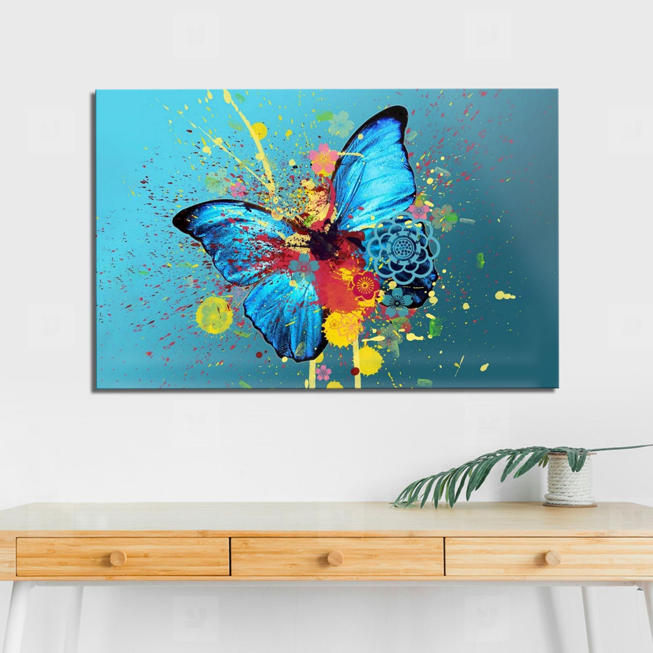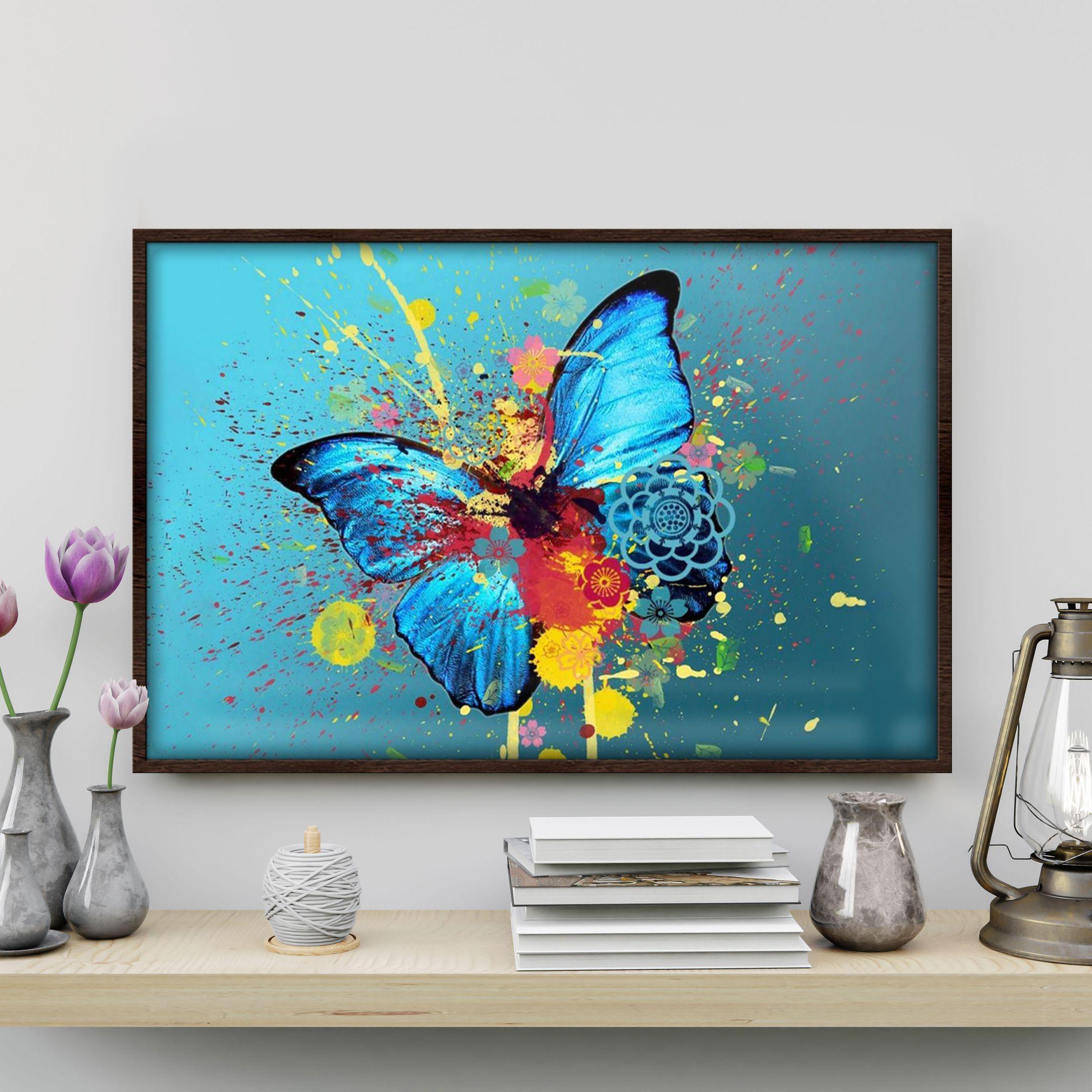 Blue Butterfly With Colorful Painting Poster Canvas Home Décor Gifts For Women Girls Friends