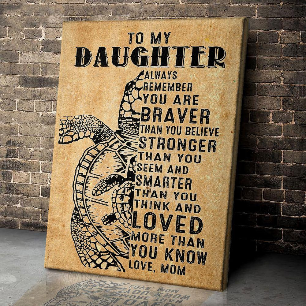 Turtle Mom And Baby Poster – You Are Braver Than You Believe Canvas Home Décor Mother’S Gifts For Daughter